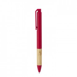 Bolígrafo retráctil. Cuerpo, puntera y pulsador de plástico reciclable. Agarre de bambú. Pintura acabado mate.