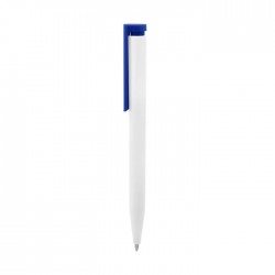 Plástico. Cuerpo blanco y clip de diferentes colores. Bolígrafo retráctil. Clip plástico de colores. Tinta negra. Sistema de botón push para destapar. Amplia área de impresión.